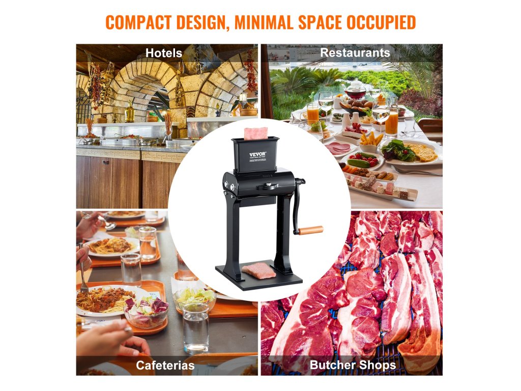Tökéletesen használható szállodákban, éttermekben, kávézókban, hentesüzletekben és más kereskedelmi létesítményekben. Bármilyen méretű is legyen a konyhája, a húsklopfoló könnyen elhelyezhető, és megfelel az üzleti igényeinek, miközben növeli a munka hatékonyságát.