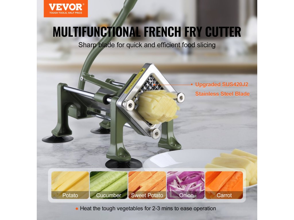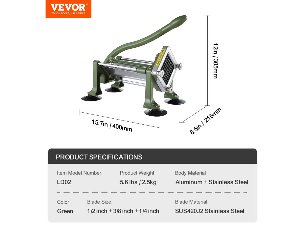 Kézi sült krumpli vágó, rozsdamentes acél pengék 1/2" 3/8" 1/4", tapadókorongok
