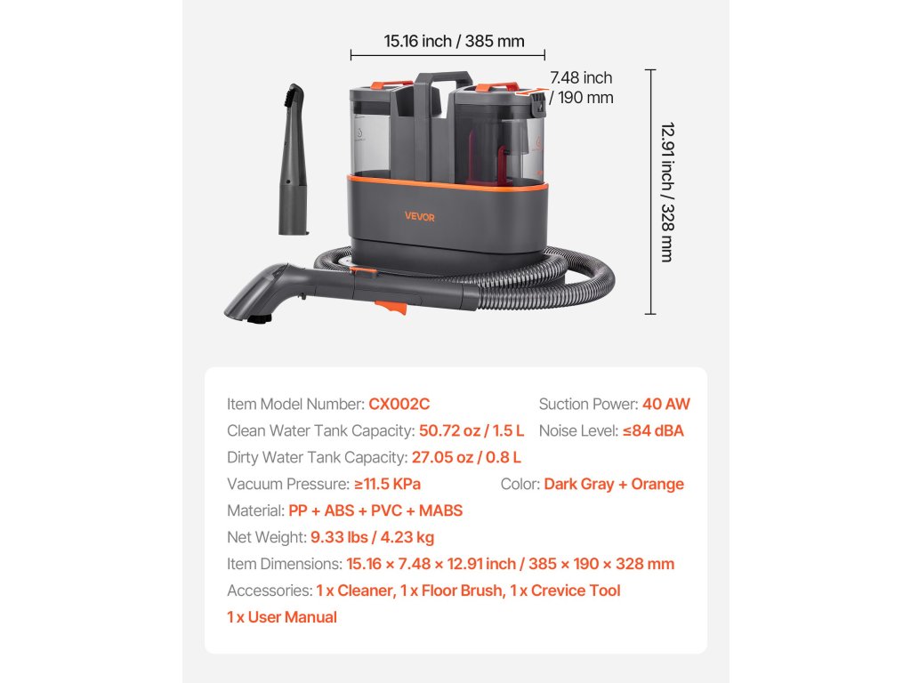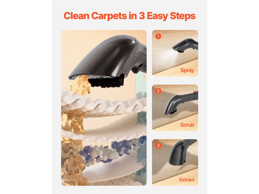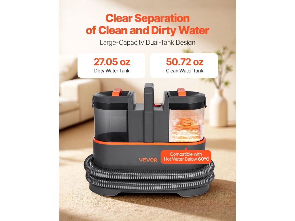 Kézi szőnyeg- és kárpittisztító 1,5 l/0,8 l 11,5 kPa autó/ülés tisztítószer