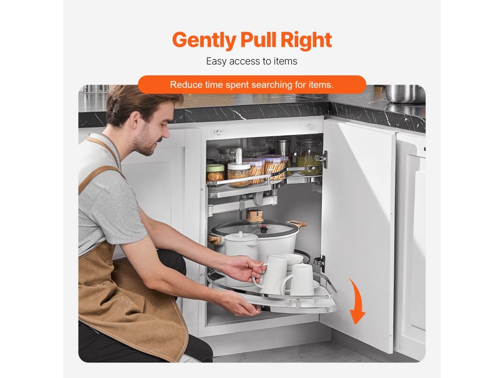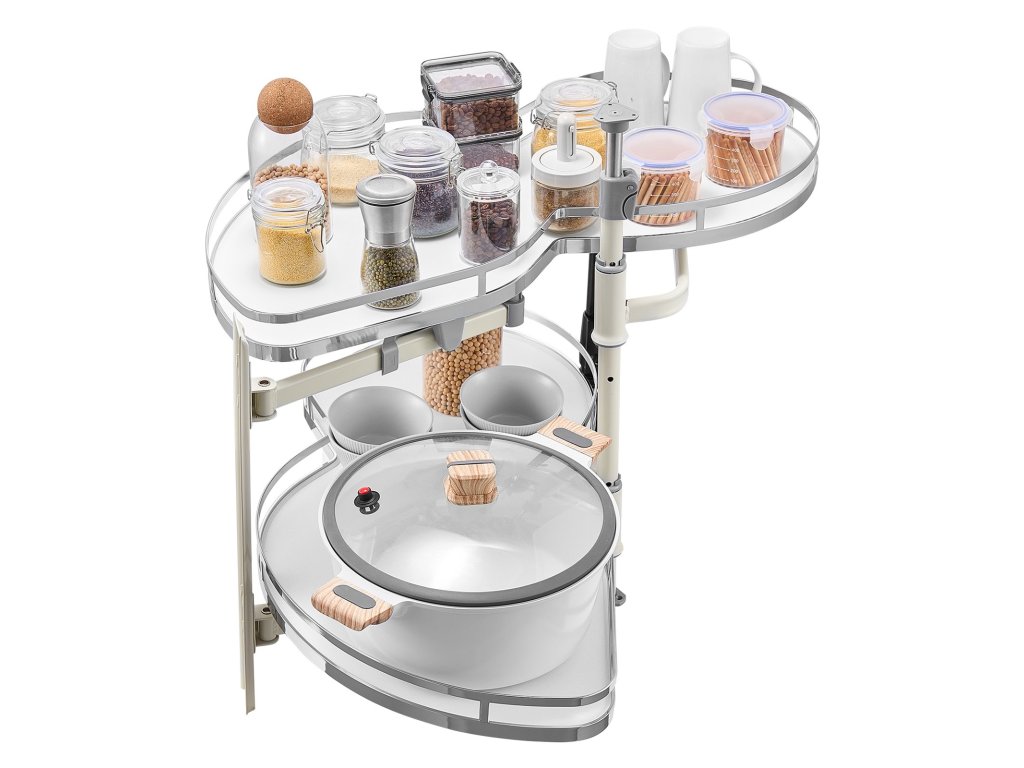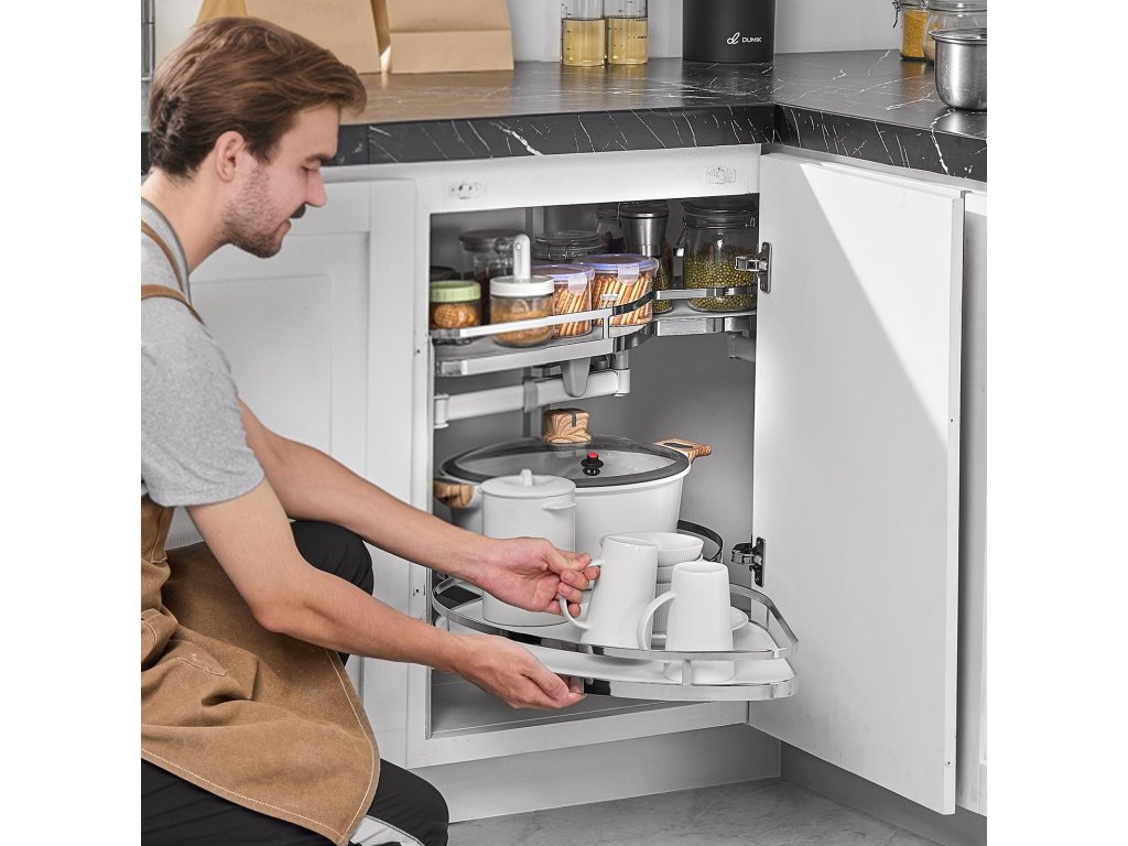 A vak sarokszekrényünket úgy terveztük, hogy a konyha sarkában lévő vakfoltok kezelésére szolgáljon, és segítsen a hely hatékony kihasználásában. A nagy befogadóképességű kialakításnak köszönhetően könnyedén tárolhat különféle konyhai tárgyakat, miközben simán kihúzhatja őket anélkül, hogy aggódnia kellene a nehezen elérhető sarokelemek miatt.