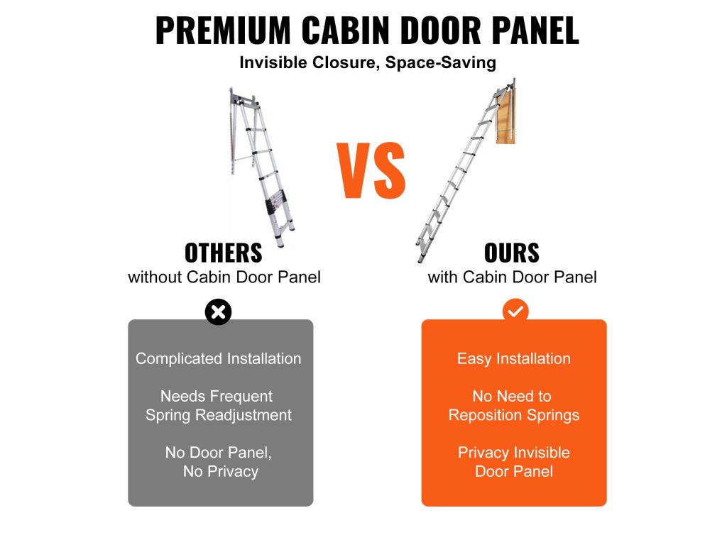 Az állítható alumínium támasztólábak, a rozsdamentes acél húzórúd és a rozsdamentes acél húzókampó korrózióálló és tartós, hosszú élettartamot biztosít, ami segít a padláslétra mindennapi használatában.