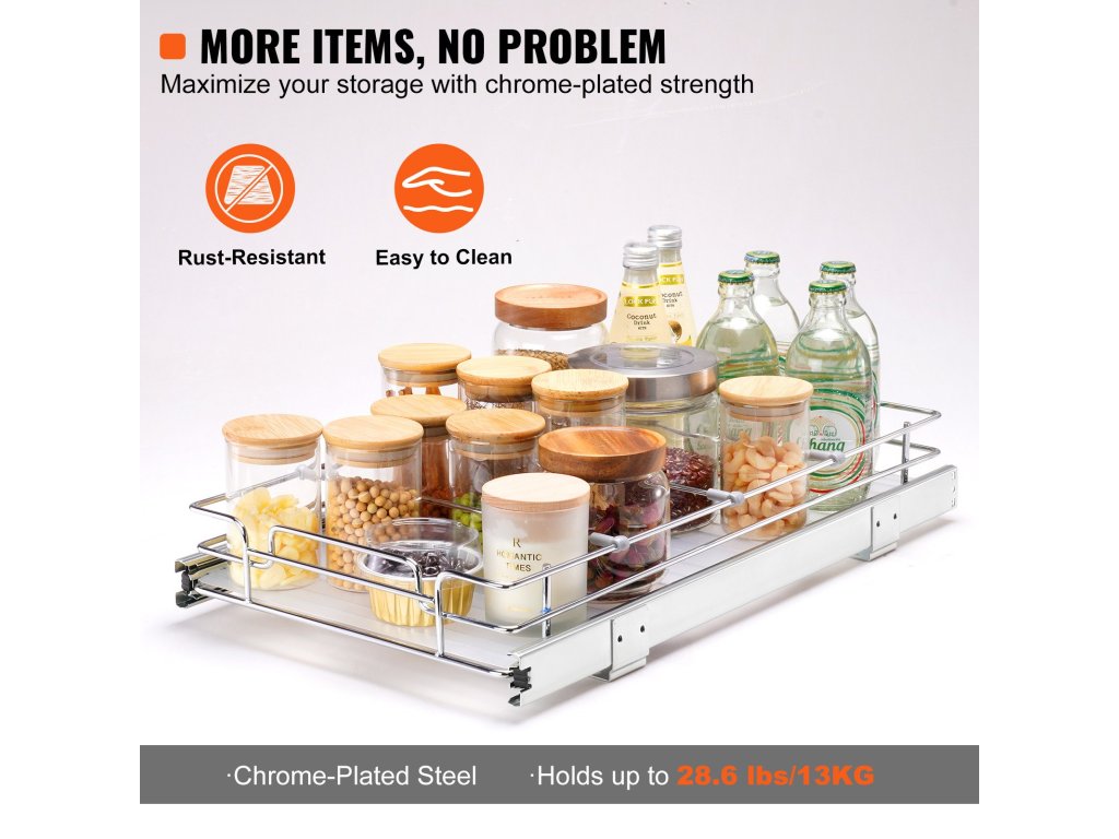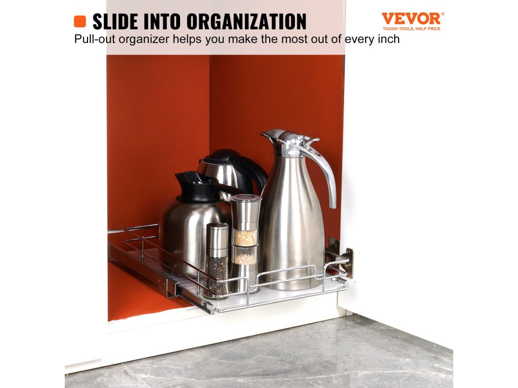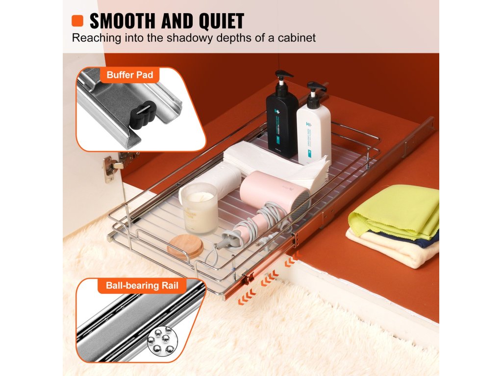 Ide o všestrannú možnosť úložného priestoru s posuvnými zásuvkami VEVOR. Môžete ho použiť na mnohých miestach, napríklad v kuchyni, kúpeľni alebo kancelárii. Vďaka posuvným policiam je prístup k uloženým predmetom jednoduchý. Hladko sa posúvajú, aj keď sú plne naložené. Táto funkcia je ideálna pre hlboké skrine alebo ťažko prístupné miesta. Tieto zásuvky sa dodávajú s deliacimi tyčami, ktoré udržia veci na svojom mieste. To pomáha predchádzať posúvaniu predmetov počas používania. Konštrukcia zaisťuje optimálnu správu priestoru. Organizér efektívne uskladní viac predmetov vo vašom dostupnom priestore, vďaka čomu je neuveriteľne užitočným doplnkom každej miestnosti.