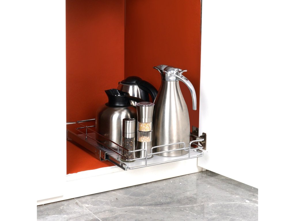 Tento vysúvací organizér do skrine prináša všetko na dosah. Už nie je potrebné kľačať, aby ste získali predmety zo zadnej časti. Hladko vysúvateľné zásuvky poskytujú rýchly prístup k vašim predmetom. Môžete si tak efektívne zorganizovať kuchyňu, kúpeľňu alebo špajzu. Tento organizér vám pomôže maximalizovať priestor a znížiť neporiadok. Dizajn zabezpečuje, že uložené predmety sú vždy viditeľné a na dosah rôznym spôsobom, takže je ideálny do rušných kuchýň alebo malých kúpeľní. Odolná konštrukcia zaručuje, že bez problémov zvládne každodenné používanie. Svoj priestor teraz môžete ľahko udržiavať organizovaný a uprataný. Výsuvný organizér do skrinky je základným prvkom na dosiahnutie dobre organizovanej domácnosti.