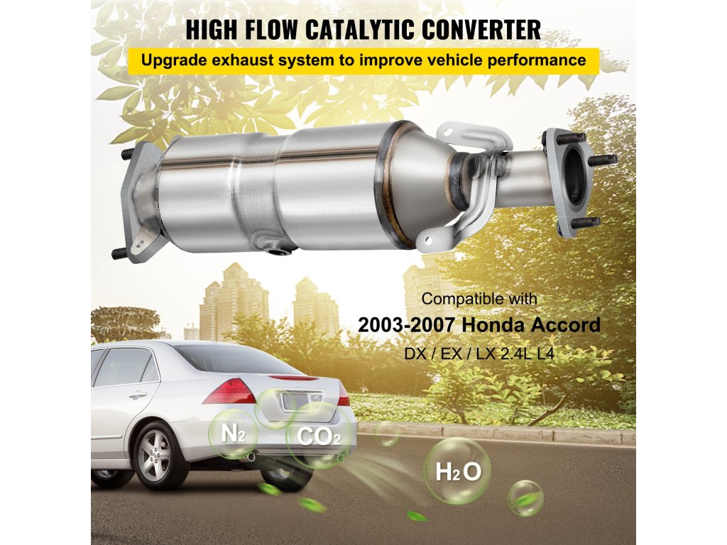 A 2003-2007-es Honda Accord DX/EX/LX 2.4L L4 modellel kompatibilis, ez a fényes katalizátor tökéletesen illeszkedik az eredeti járművéhez. A 2,2"/5,5 cm külső átmérőjű kipufogócsövekhez illeszkedik.