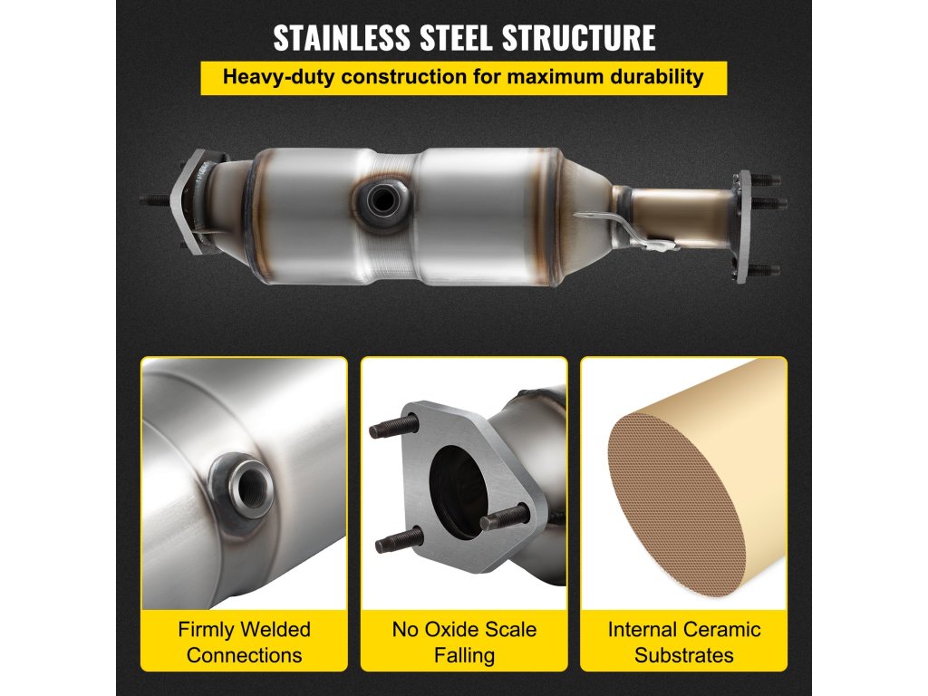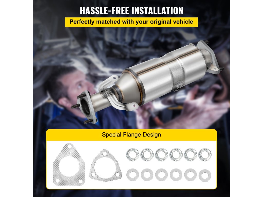 Ez a szabad áramlású katalizátor csavarozott csatlakozásokkal és karimás karimás kialakítással rendelkezik a problémamentes beszerelés érdekében. Ezenkívül teljes körű tartozékokkal, például tömítésekkel és hardverekkel érkezik, hogy megkönnyítse a cserét.