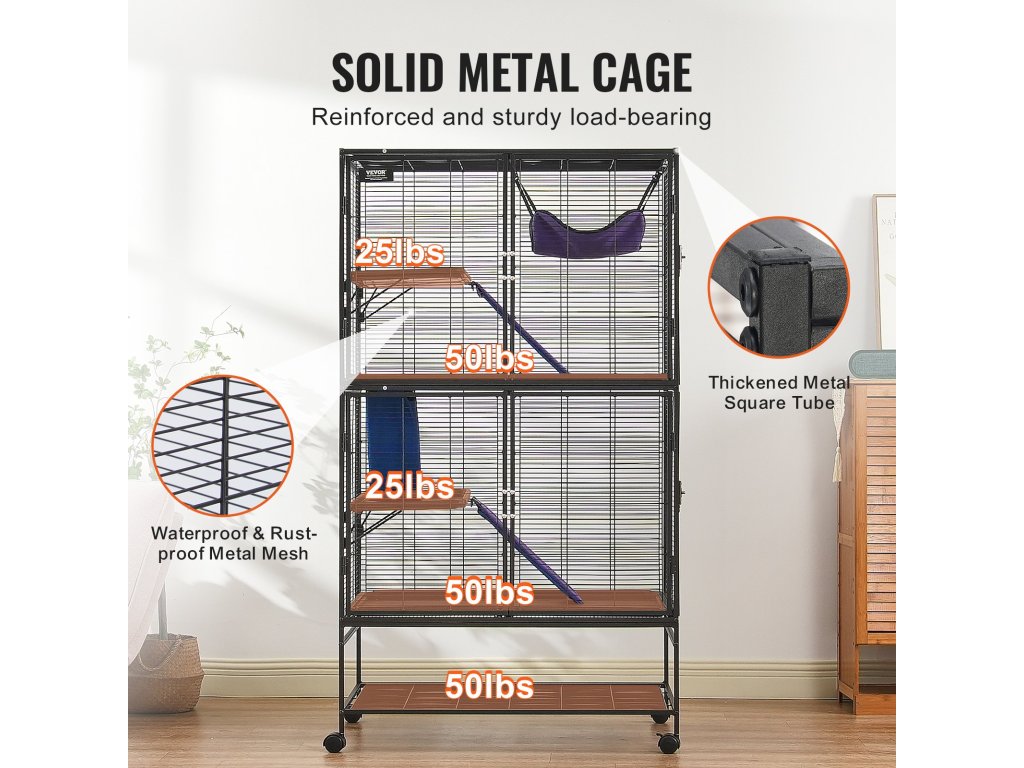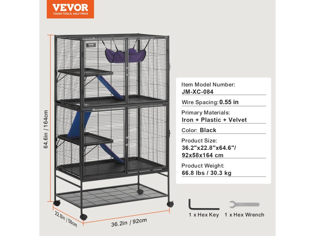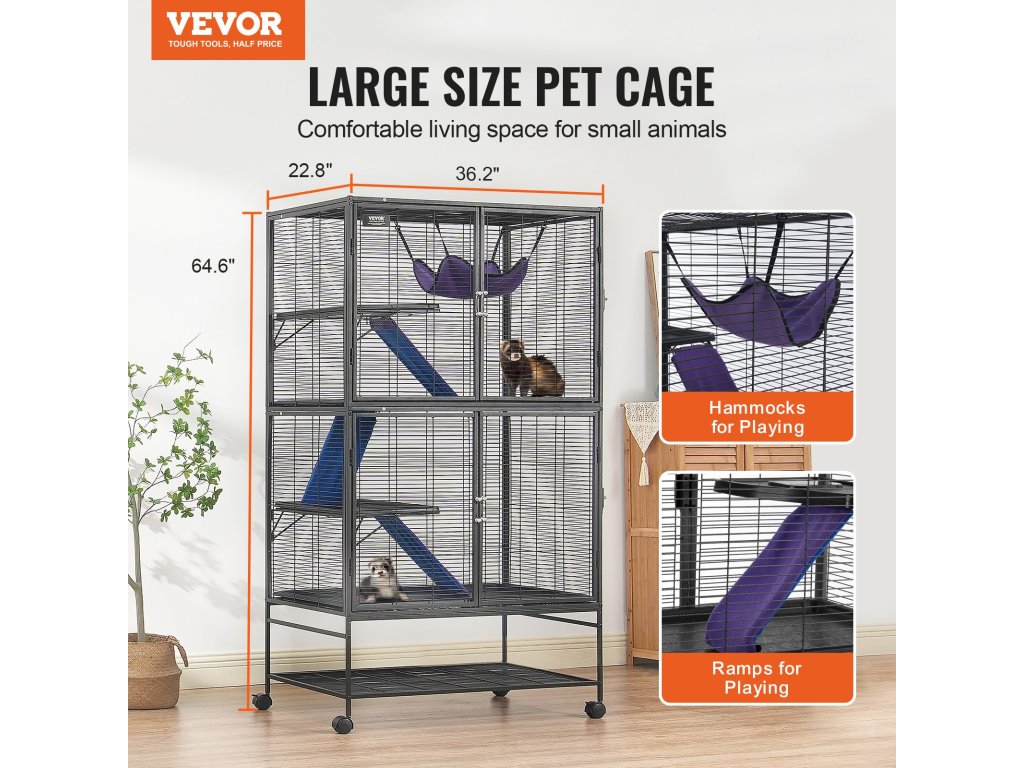 A 36,2" x 22,8" x 64,6" méretű görényketrec 4 különböző magasságú platformmal lehetővé teszi egy vagy több kisállat egyidejű szórakoztatását, nagyobb életteret és maximális kényelmet biztosítva.
