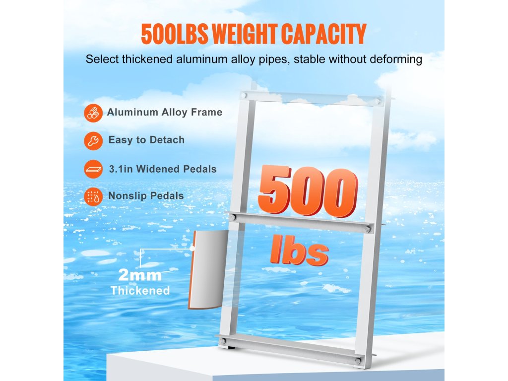 Námorný rebrík VEVOR je skonštruovaný tak, aby vydržal. Je vyrobený z vysokokvalitnej hliníkovej zliatiny, čo zaručuje jeho pevnosť a odolnosť. Rebrík unesie až 500 kg, čo je pre väčšinu používateľov viac než dosť. Táto vysoká nosnosť znamená, že rebrík zvládne náročné používanie bez toho, aby sa pokazil. Konštrukcia je navrhnutá tak, aby odolala poveternostným vplyvom, takže je vhodná na dlhodobé používanie v exteriéri. Či už ho používate na jazere, v bazéne alebo na lodi, tento rebrík vám bude poskytovať spoľahlivú oporu dlhé roky.