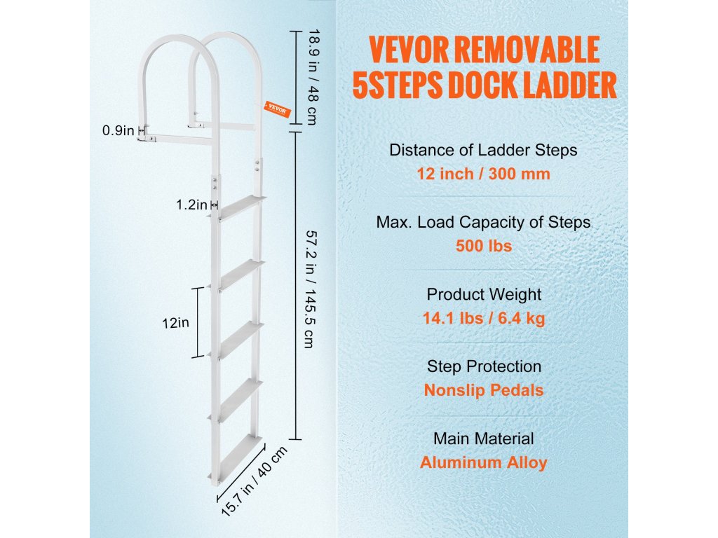 Prístavný rebrík VEVOR je ľahký a ľahko sa s ním manipuluje. Vďaka tomu je ideálny pre seniorov a deti. Jeho hmotnosť je len 14,1 kg. Ľahko sa zdvíha a premiestňuje. Napriek svojej ľahkej konštrukcii je rebrík pevný a spoľahlivý. Protišmykové gumové podložky na každom schodíku poskytujú zvýšenú bezpečnosť, najmä pre mladších a starších používateľov. Intuitívny dizajn rebríka znamená, že jeho inštalácia a používanie sú jednoduché aj pre osoby s obmedzenými technickými zručnosťami. To z neho robí vynikajúcu voľbu pre rodiny, ktoré hľadajú spoľahlivý a bezpečný prístavný rebrík.