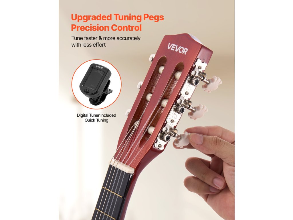V: 30", 36" és 38" klasszikus gitárokat kínálunk, amelyek minden korosztály számára alkalmasak: 38" Full-Size: felnőtteknek és tizenéveseknek 175 cm-től felfelé.36" méret: 7-11 éves korú gyermekek számára, magasság 4'3"-4'11".30" méret: 4-7 éves korú fiatalabb gyermekek számára, magasság 3'7"-4'3".