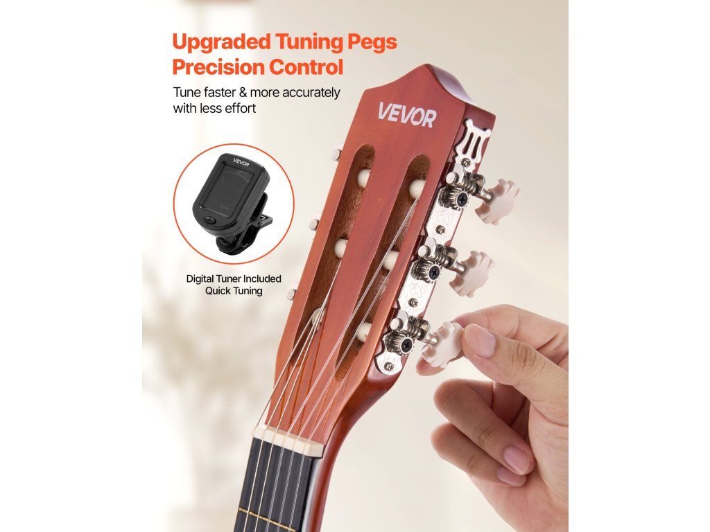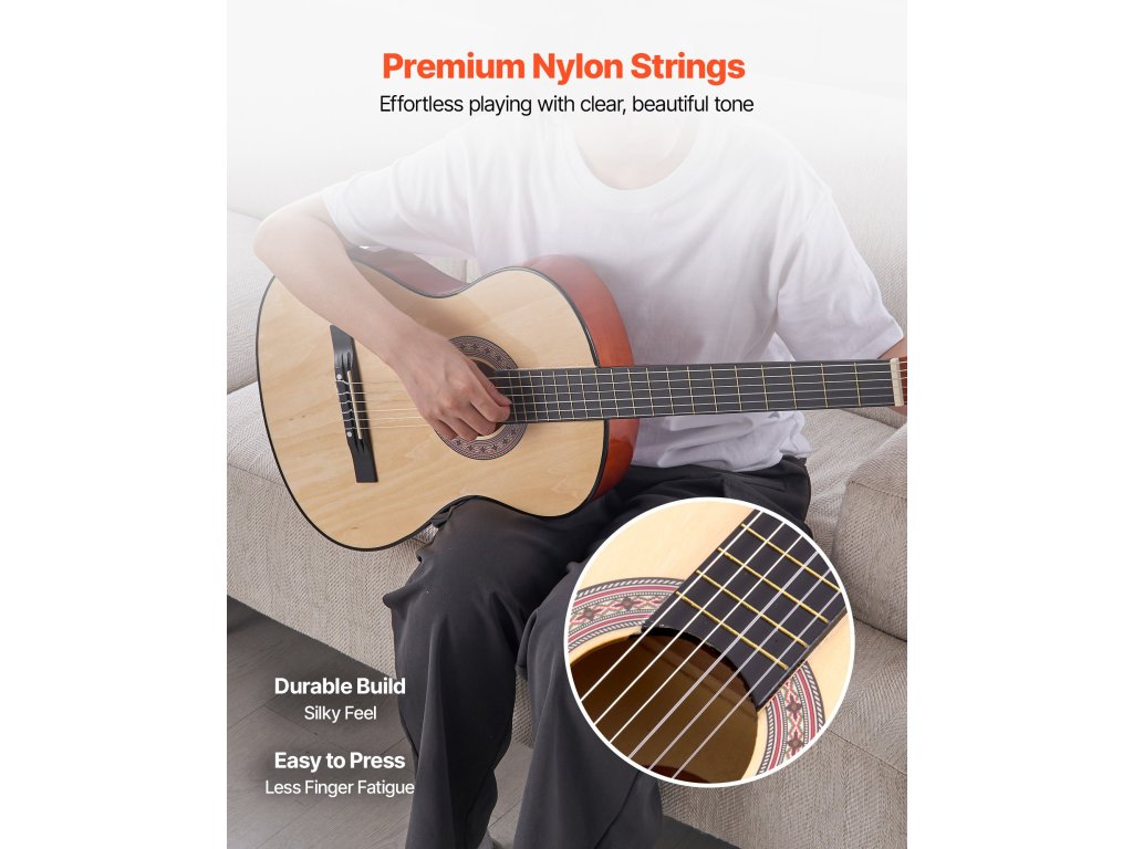 V: 30", 36" és 38" klasszikus gitárokat kínálunk, amelyek minden korosztály számára alkalmasak: 38" Full-Size: felnőtteknek és tizenéveseknek 175 cm-től felfelé.36" méret: 7-11 éves korú gyermekek számára, magasság 4'3"-4'11".30" méret: 4-7 éves korú fiatalabb gyermekek számára, magasság 3'7"-4'3".