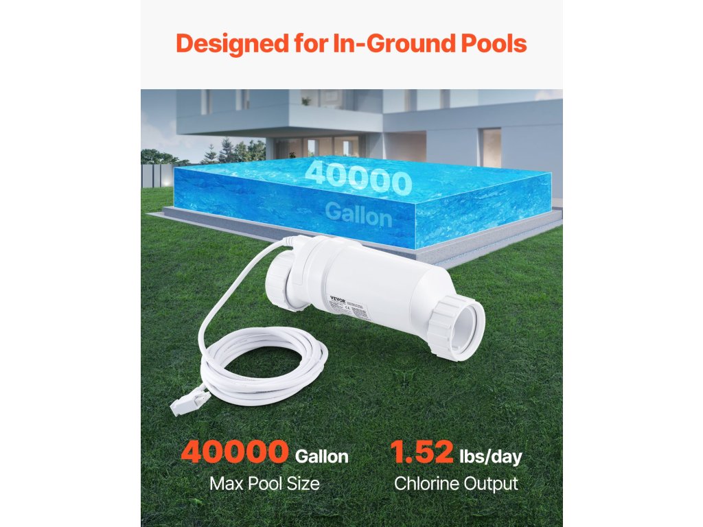 | Použiteľná kapacita bazéna | 40 000 galónov, vnútrozemské bazény |