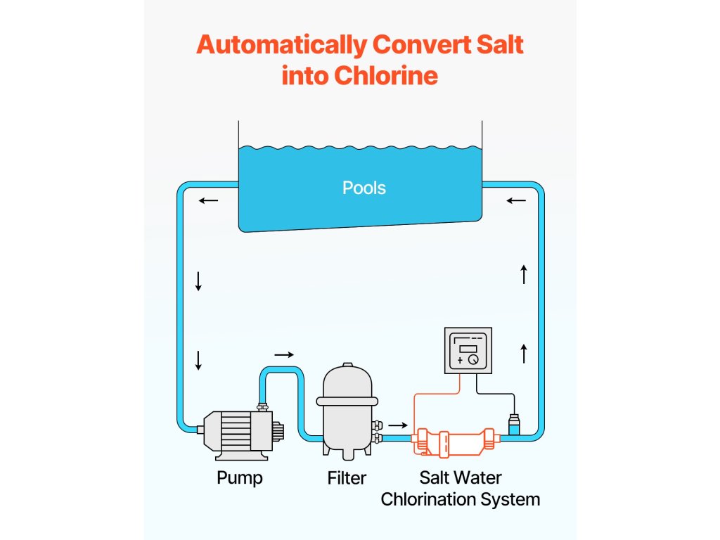 A fejlett elektrolitikus technológia segítségével ez a sósvizes medence klórozó berendezés a titánlemezek és a só közötti reakció révén klórt termel, biztosítva a hosszú távú stabil és hatékony működést, miközben a medence vize mindig tiszta marad.