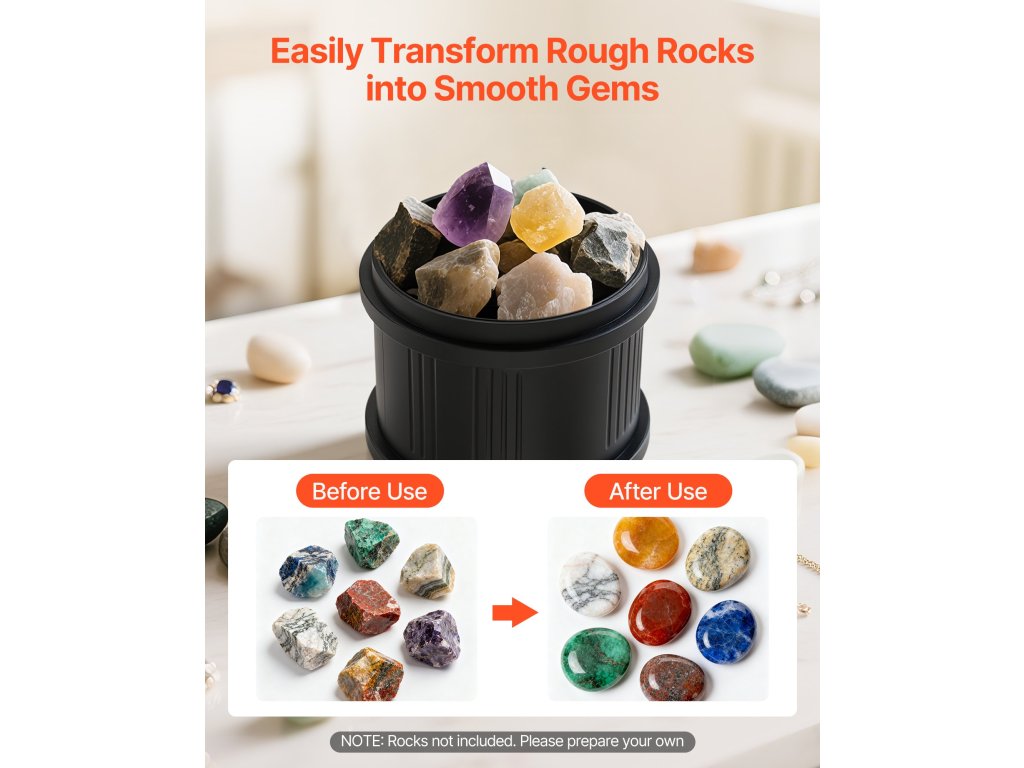 Ez a kőpolírozó készlet többlépcsős eljárással a durva köveket sima, finom darabokká alakítja. A művelet egyszerű és hatékony, nem igényel bonyolult lépéseket a kifinomult eredmény eléréséhez.