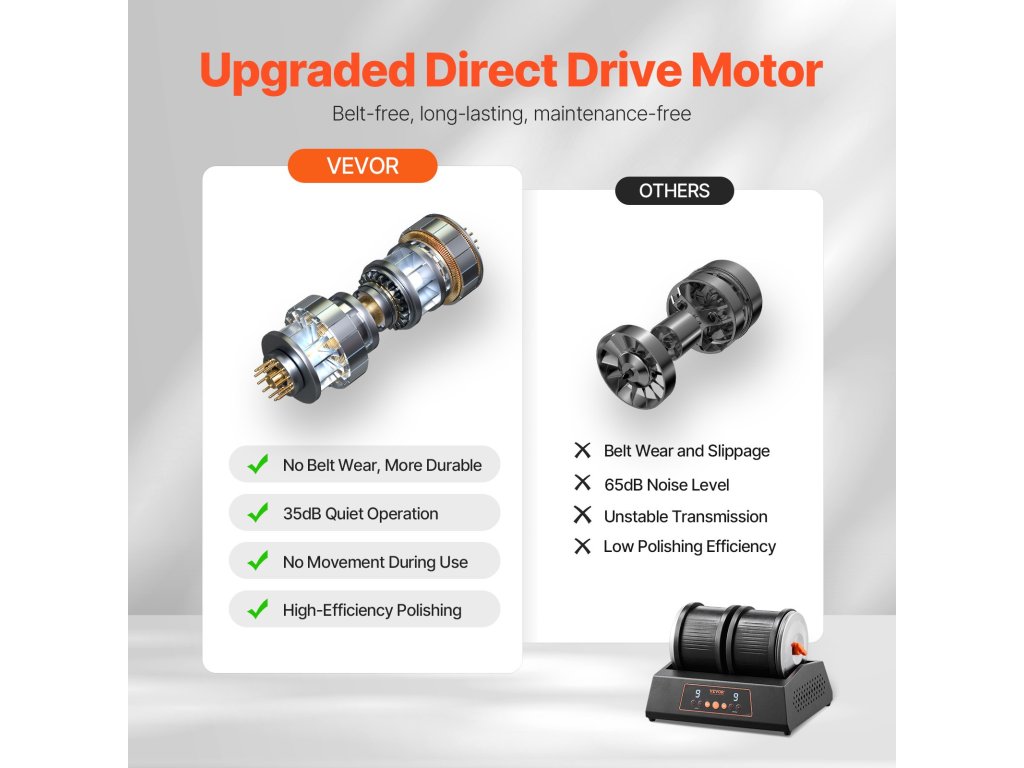 Kőcsiszoló gép 8 font, dupla dob, 9 sebesség, 35 dB