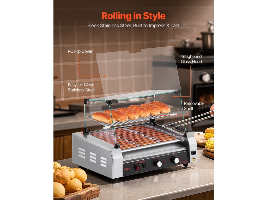 Ez a kereskedelmi hot dog henger tartós, elegáns és könnyen tisztítható, esztétikailag és funkcionalitásban is gazdagítja konyháját.