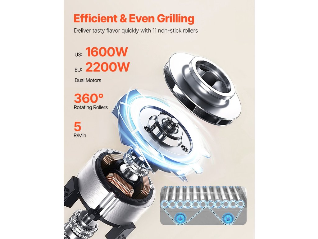 Az erőteljes motor és a biztonságos hőmérséklet-szabályozás lehetővé teszi, hogy a tapadásmentes rozsdamentes acélhengerek 360 fokban forogjanak az egyenletes melegítés érdekében.