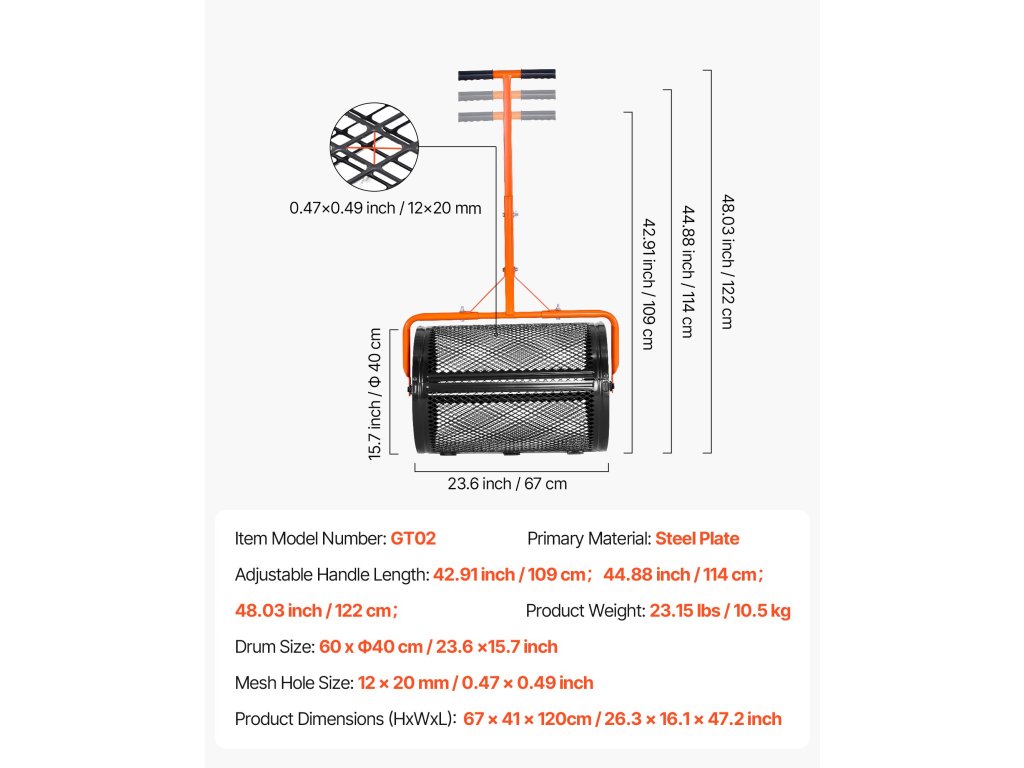 A 24 hüvelykes komposztszórónk a hatékony szórás, a kisebb helyigény, a hosszabb élettartam, a nagy kapacitás és a gyors összeszerelés kombinációja. Akár kezdő, akár tapasztalt kertész, imádni fogja a könnyű használatot, amely zöldebb pázsitot, élénkebb kerteket és termékenyebb földeket eredményez.