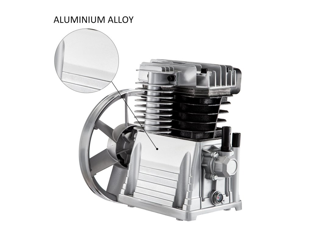 Egyfokozatú légkompresszorszivattyúnk kúpos görgős csapágyból, tűgörgős dugattyúgyűrűből, extra nagy teherbírású vezérlésből, valamint a hőelvezetés érdekében alumínium fejből és szeleptányérból áll.