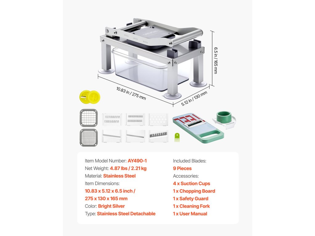 A robusztus és korrózióálló, éles, rozsdamentes acélból készült pengék pontos szeletelést biztosítanak, egyenletes méretre vágják az összetevőket, és csökkentik az ételek ragadását a simább szeletelés érdekében.