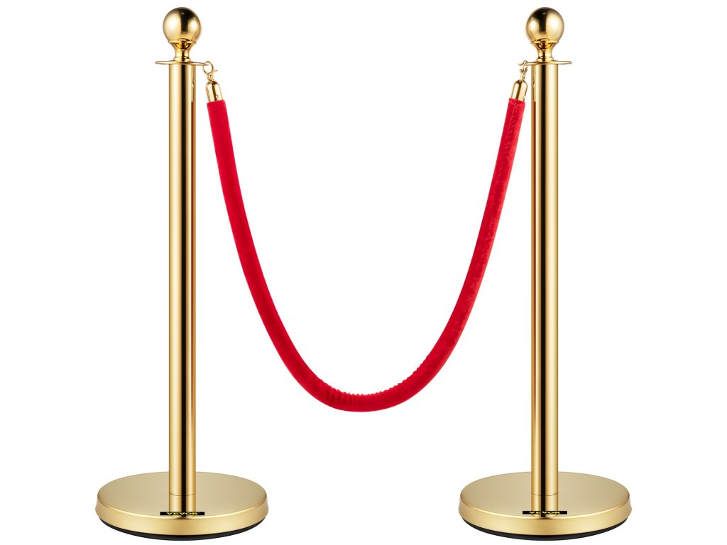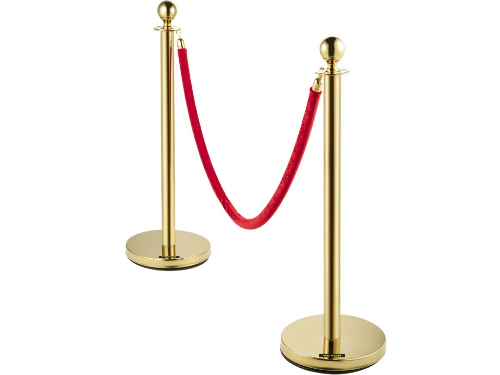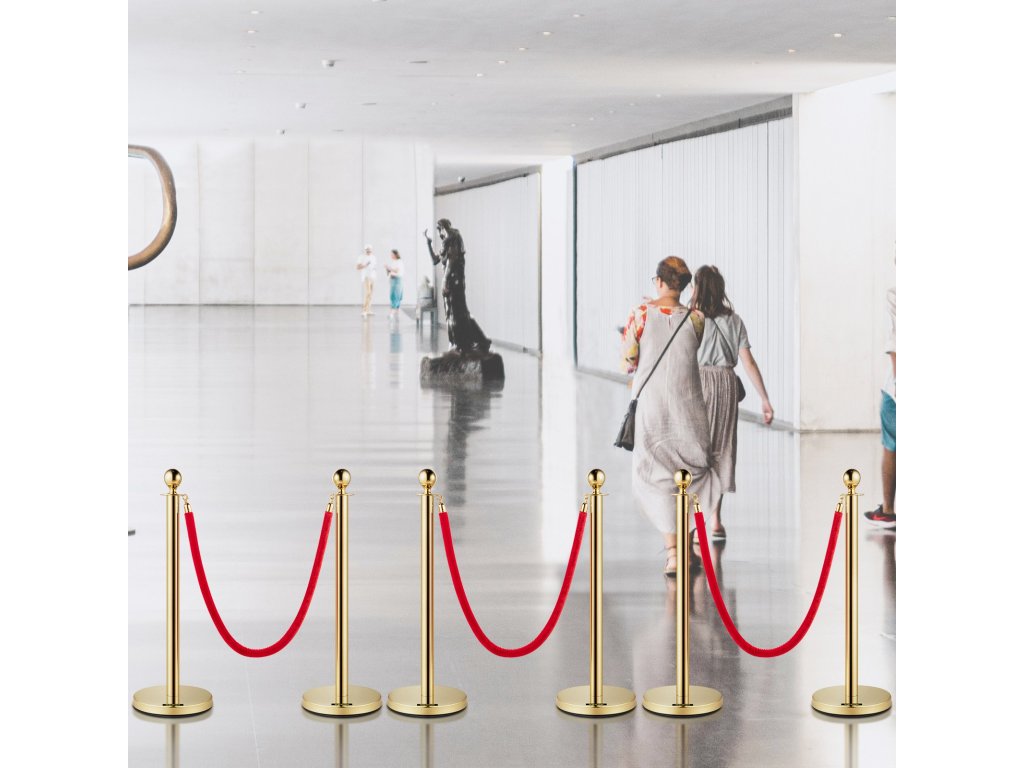 Kordon szett piros 1,5 m-es kötéllel, arany rozsdamentes acél oszlopokkal 6 db
