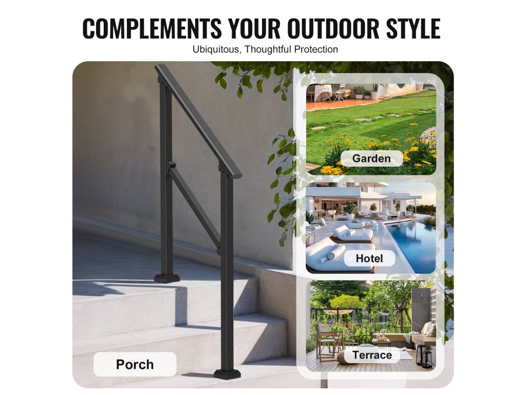Korlát kültéri lépcsőhöz 2–3 fokos, acél, fekete, összeszerelhető