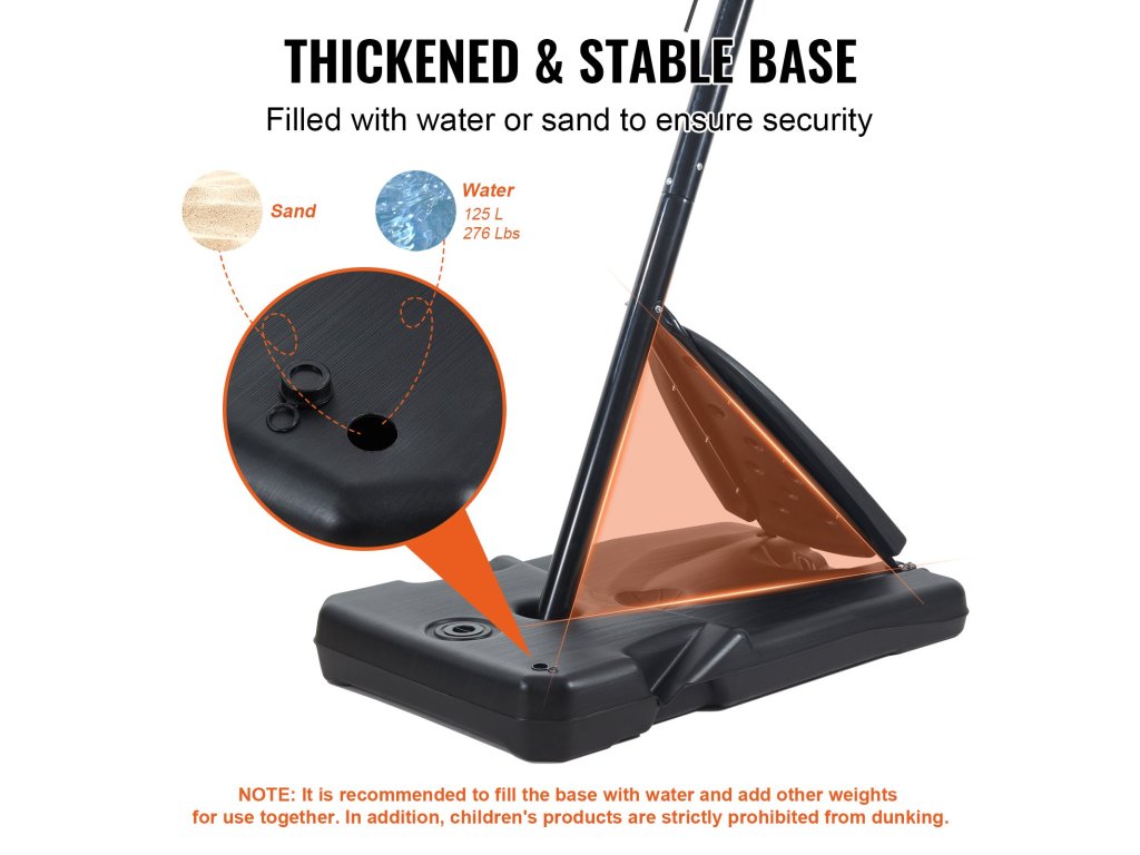 A kültéri kosárlabdapalánk megerősített és stabil talppal van ellátva. Az alap feltöltéséhez választhat vizet vagy homokot, így szilárd és biztonságos alapot kap a játékokhoz.