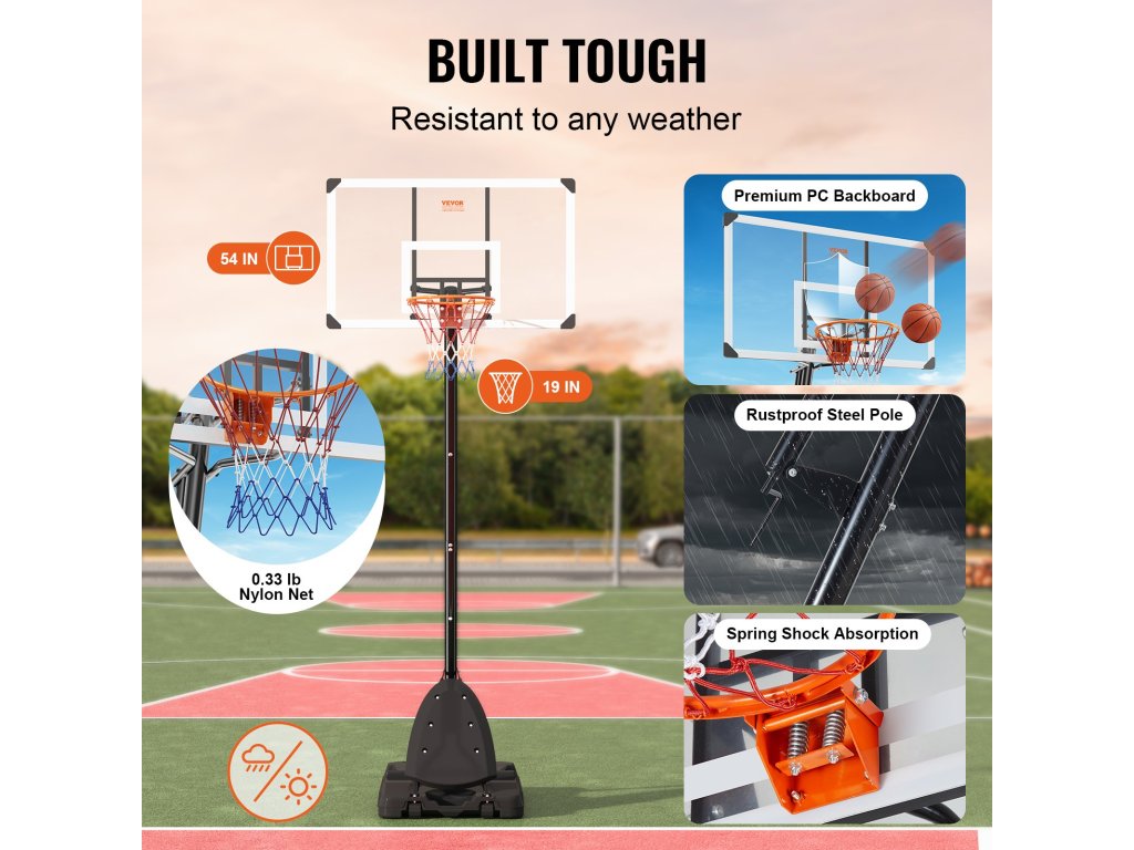 Ne hagyja, hogy az időjárás diktálja, mikor élvezheti a kosárlabdameccset. Ez a kosárlabdakapu úgy készült, hogy ellenálljon az időjárásnak, és olyan anyagokból készült, amelyek rozsda- és korrózióállóak.