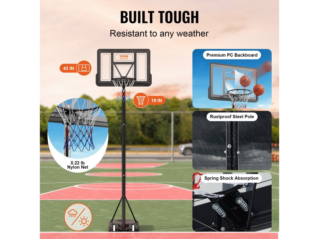 Ne hagyja, hogy az időjárás diktálja, mikor élvezheti a kosárlabdameccset. Ez a kosárlabdakapu úgy készült, hogy ellenálljon az időjárásnak, és olyan anyagokból készült, amelyek rozsda- és korrózióállóak.