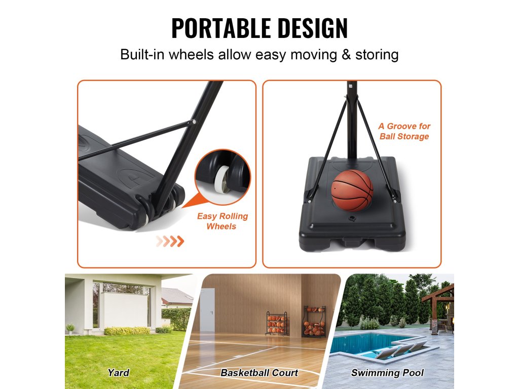 Ezzel a hordozható, kerekeken guruló kapuval bárhol rugalmasan kosárlabdázhat, ahol csak akar. A kosárlabdakészlet könnyen mozgatható és szállítható.