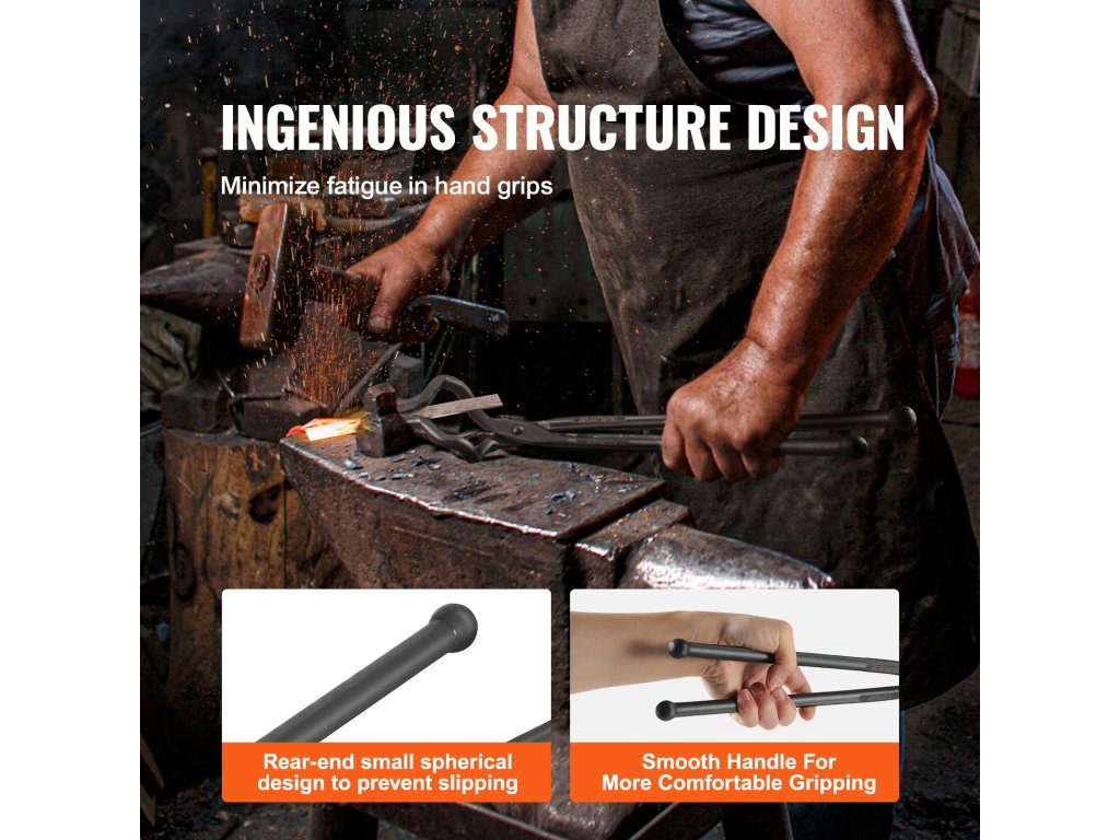 A kovács fogó használatakor kényelmes fogást fog érezni, amely csökkenti a fáradtságot. Könnyűek és könnyen tarthatók még hosszabb használat során is. A kis kerek kialakítás megakadályozza a csúszást ütések közben, míg a nyél sima formája kényelmes fogást biztosít.