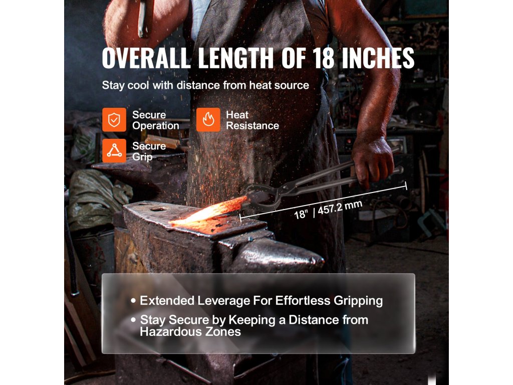 Kovácsoló fogónk meghosszabbított fogantyúja távol tartja a felhasználó kezét a kalapács ütési zónájától, növelve a biztonságot és a kényelmet munka közben.