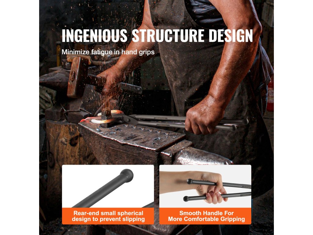 A kovács fogó használatakor kényelmes fogást fog érezni, amely csökkenti a fáradtságot. Könnyűek és könnyen tarthatók még hosszabb használat során is. A kis kerek kialakítás megakadályozza a csúszást ütések közben, míg a nyél sima formája kényelmes fogást biztosít.