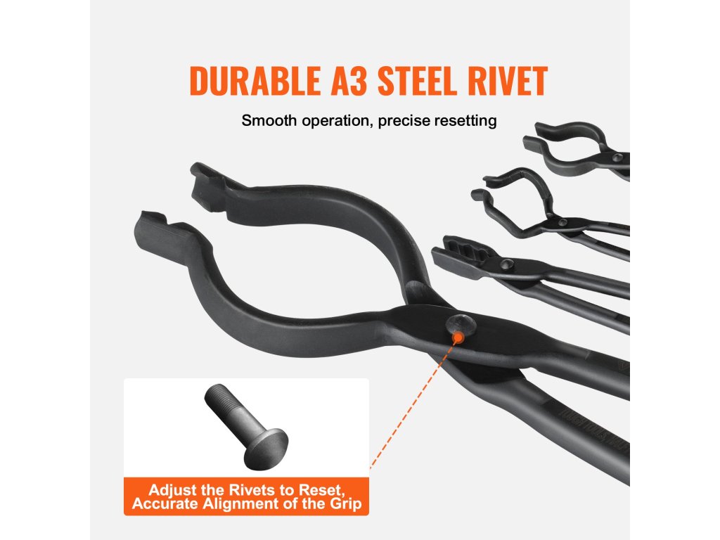 Kovácsoló fogóinkat magas hőmérsékletű környezetben történő hosszú távú használatra terveztük, így biztosítva a tartósságot és csökkentve a gyakori csere szükségességét. Ha a pofák idővel elferdülnek, a szegecsek egyszerű beállításával újra beállíthatók, így biztosítva a pontos ellenőrzést.