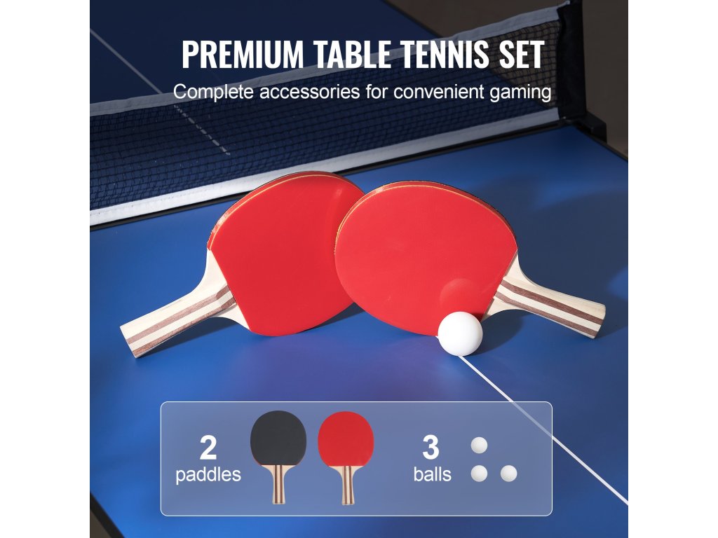 Közepes MDF összecsukható asztal hálóval, 2 evezővel, 3 labdával