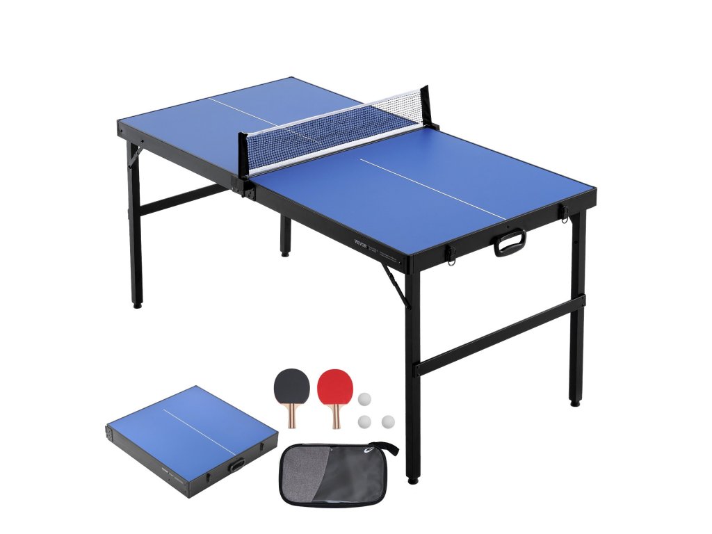Termék mérete: 60x26x28 hüvelyk. Ez az asztalitenisz asztal minden rekreációs igényt kielégít a gyerekekkel. Méretei összehajtva: 30x31,5 hüvelyk, a ház bármelyik sarkában elhelyezhető, hogy helyet szabadítson fel.