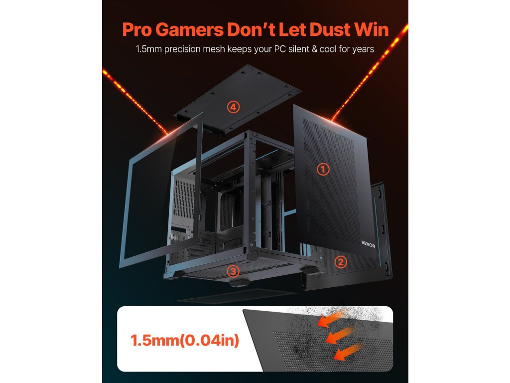 V: A tisztítás egyszerűbb, mint a telefon képernyőjének cseréje! A gyorskioldó kialakításnak köszönhetően könnyedén leválaszthatja a felső, az oldalsó és az elülső panelt. Az alján mágneses porszűrő is található, így a tisztítás gyerekjáték, és mindössze 3 percet vesz igénybe.