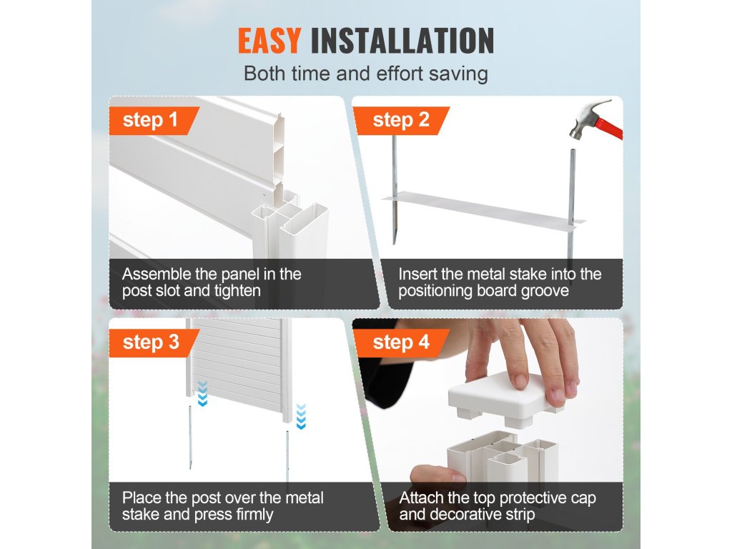 A 4 paneles PVC adatvédelmi kerítésünk tartós, horganyzott fém cölöpökkel hosszú élettartamú kültéri használatot biztosít. Az 50 "x50" méret sokoldalú kerítési lehetőségeket kínál a kültéri létesítmények vagy magánterületek számára. Minden szükséges tartozékkal és részletes útmutatóval érkezik, tökéletes az udvar megjelenésének feldobásához.