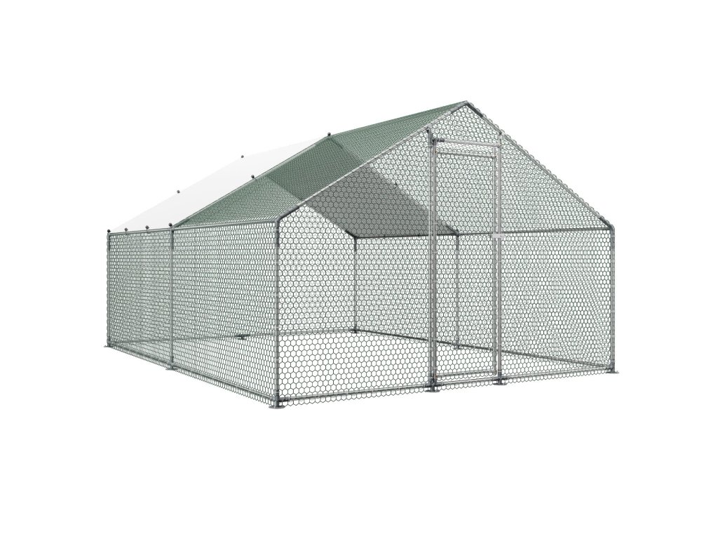 Kültéri baromfiudvar 9,8 × 13,1 × 6,5 láb fedéllel és csúcsos tetővel