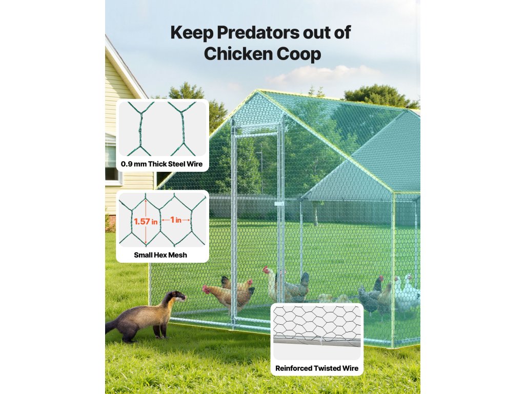 Fém csirketárolónk horganyzott acélcsövekből készül, amelyek a rozsdásodás megelőzése érdekében sós ködben teszteltek. Biztonságos és hangulatos, kiváló minőségű otthont nyújt csirkéinek, függetlenül attól, hogy esik-e az eső vagy süt a nap.