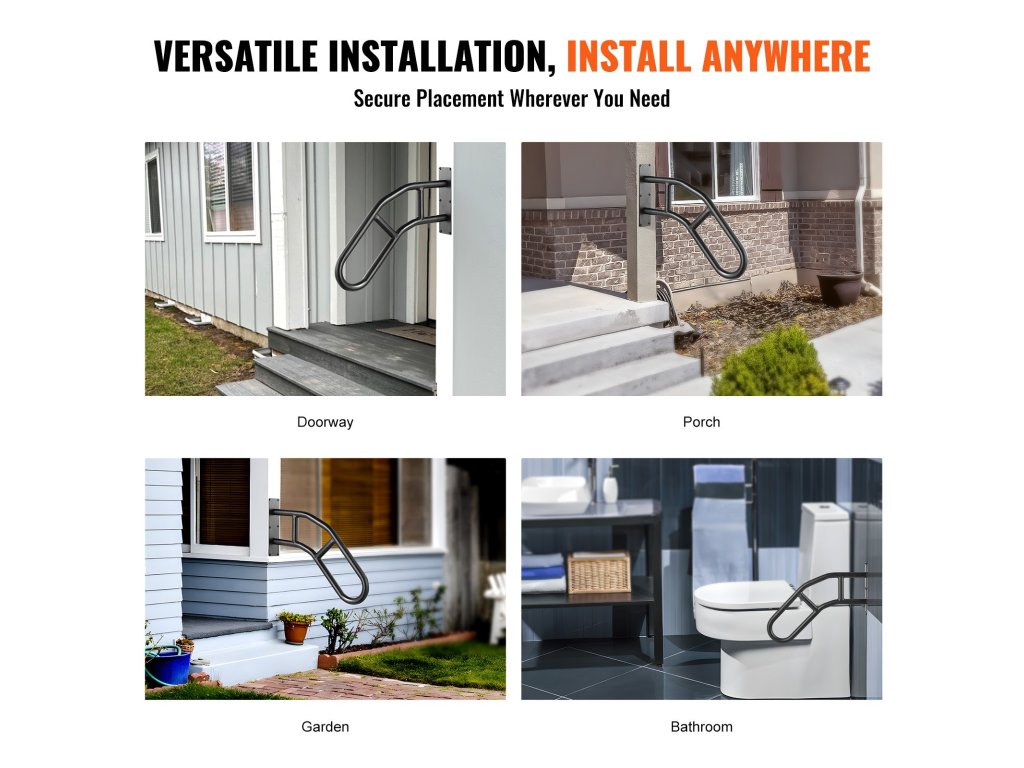 A prémium minőségű szénacélból készült kültéri fali korlátjaink kivételes robusztusságot és erős teherbírást garantálnak. Fém tágulási csövekkel felszerelve teljes mértékben alátámasztja a felnőtteket kilengés vagy vetemedés nélkül. Biztonságos támaszt nyújt lépcsőn való fel- és leszálláskor.