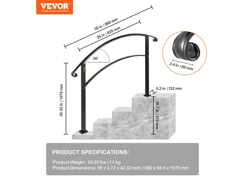 A kültéri lépcsőkorlát alkalmas házhoz, kerthez, szállodához, tornáchoz és más lépcsővel vagy lépcsővel ellátott helyekre. A biztonság és a kényelem növelésére szolgáló támasztékként szolgál.