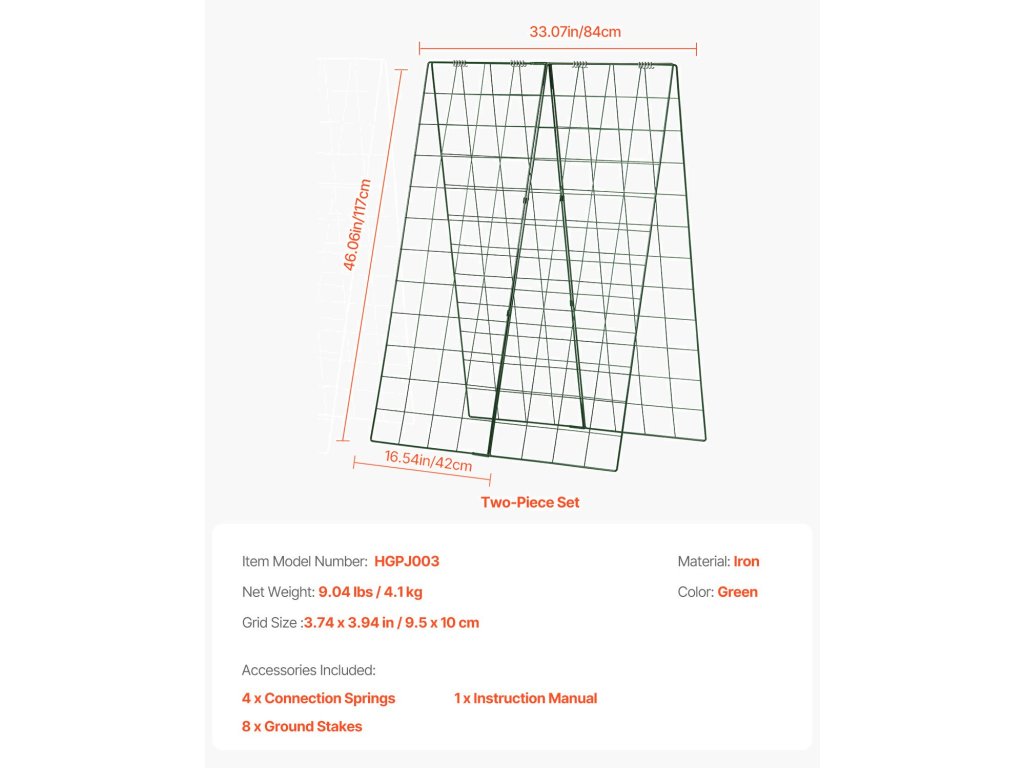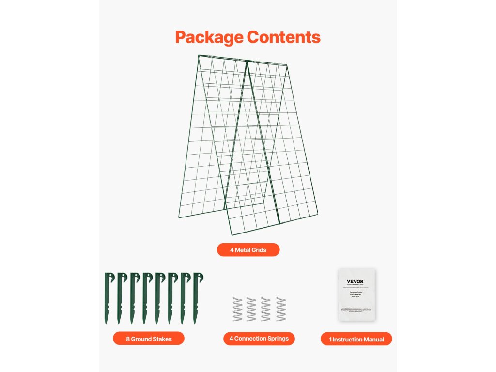 A tartós fémkeretből készült, korróziógátló bevonattal ellátott uborkarács erős és ellenáll a korróziónak és a szélnek. Nincs szükség szerszámokra. Egyszemélyes felállítás! Ideális uborkához és más kúszónövényekhez, javítja a légáramlást, elősegíti a növekedést a bőséges termés érdekében.