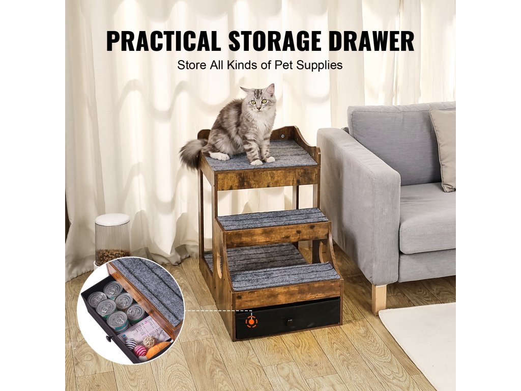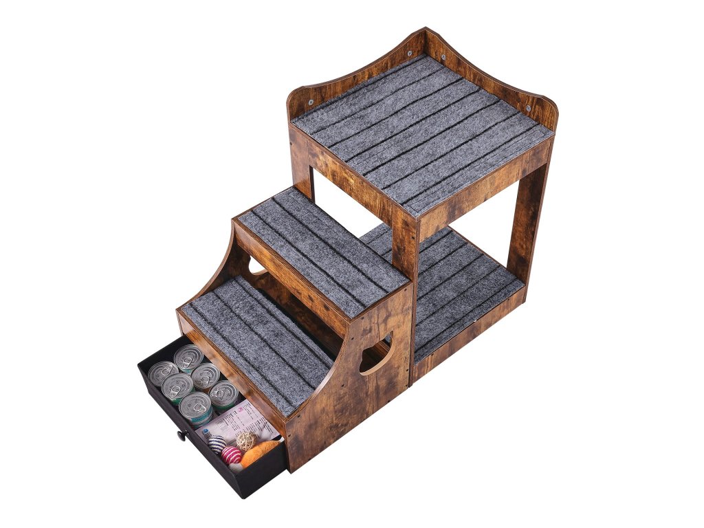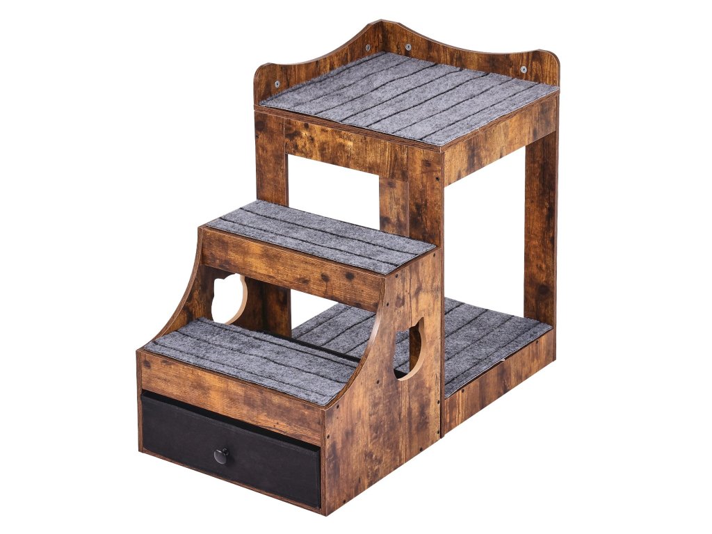 Kutya- és macskafekhely levehető lépcsővel és tárolódobozzal