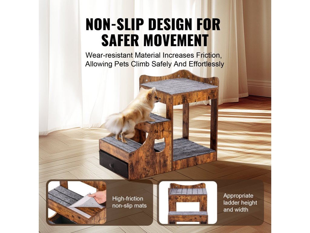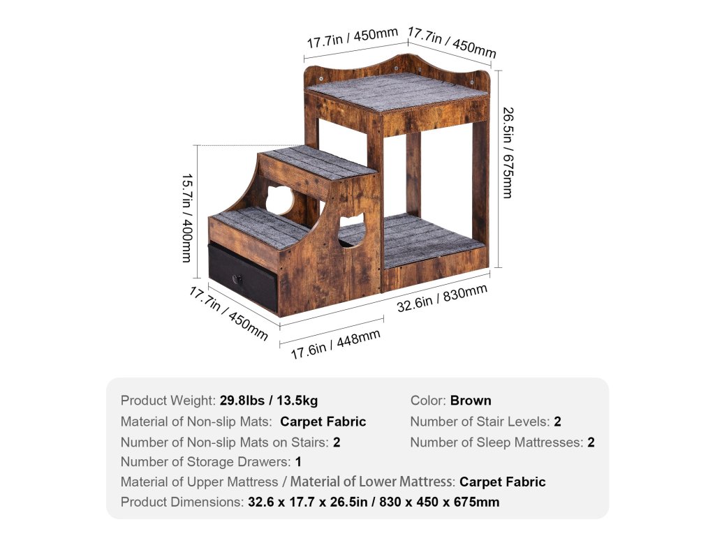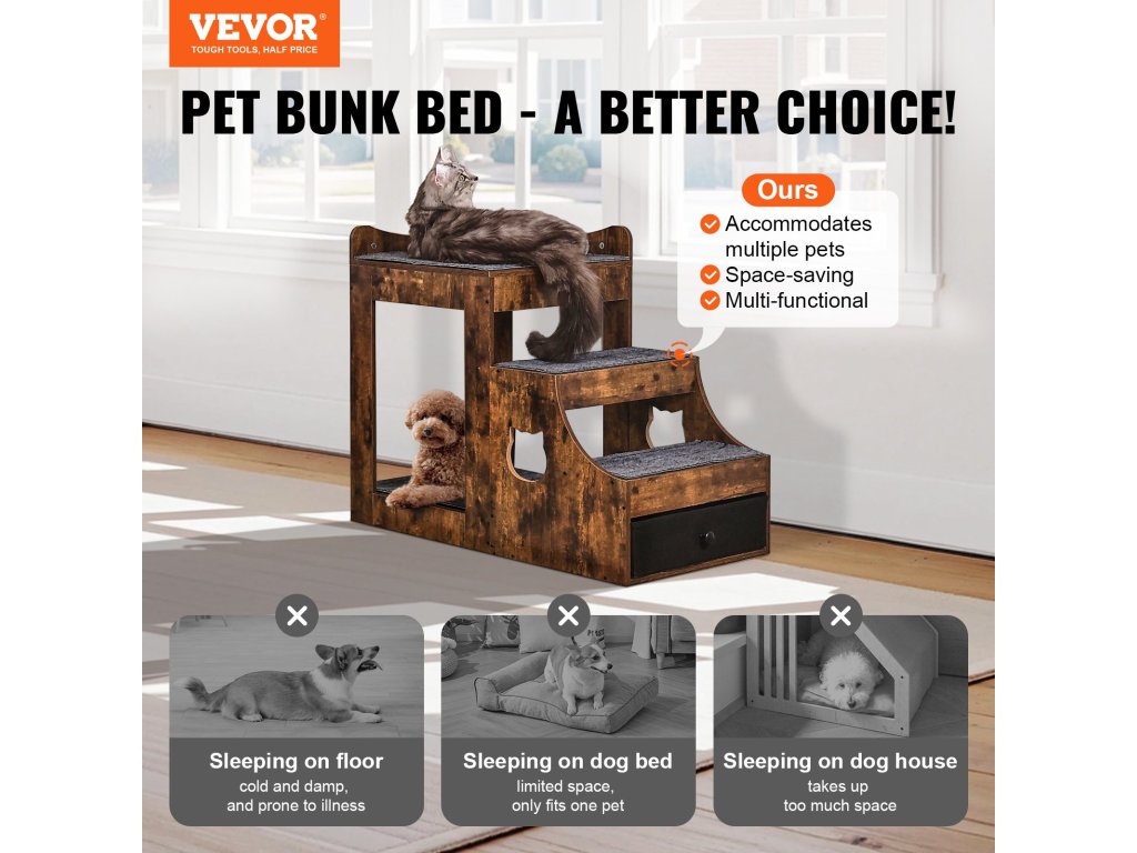A VEVOR kétszintes kisállatágy egy többfunkciós termék, amely egy kétszintes kisállatágyat és egy kisállat mászóplatformot kombinál, tágas, csúszás- és kopásállósággal és tartóssággal, lehetővé téve, hogy háziállatai kényelmesen, biztonságosan és egyszerűen másszanak és pihenjenek.
