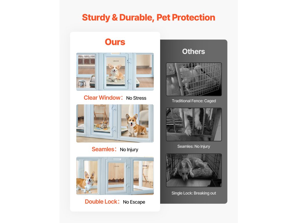 Akár állattartó, akár hivatásos állatorvos, ez a kutyatároló biztonságos és kényelmes helyet biztosít kedvencének. Tartós anyagokból készült, és felhasználóbarát kialakítással rendelkezik, amely ötvözi a funkcionalitást és az esztétikát. Könnyen összeszerelhető, és ideális háziállatok nevelésére életük minden szakaszában.
