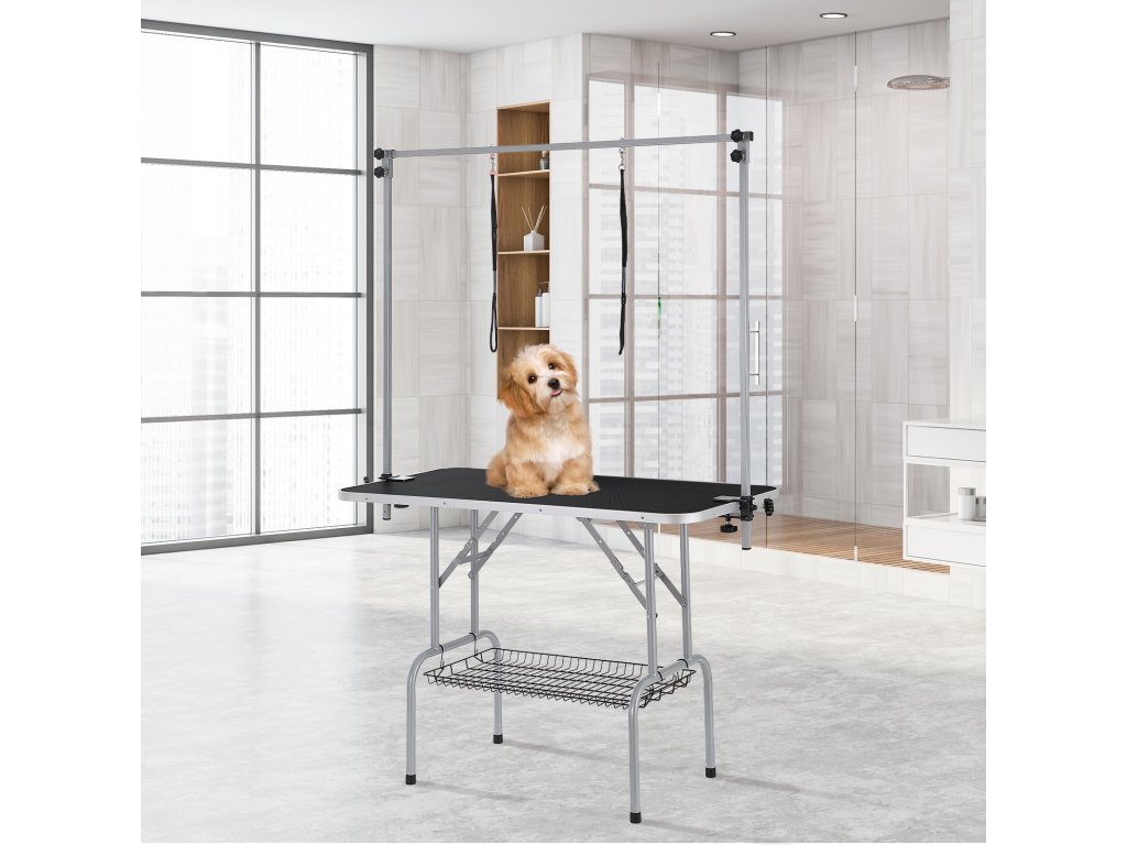 Kutyakozmetikai asztal, 117 cm, 2 karral, összecsukható, teherbírás 149,7 kg