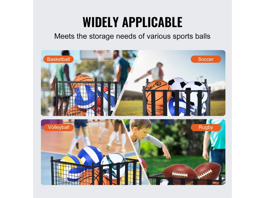 Ez a labdatároló kocsi a függőleges tárolás révén maximalizálja a ketrec belső terét, így több sportlabda is elfér benne. Maximalizálja a helytakarékosságot, és tiszta és szervezett teret biztosít a tevékenységekhez. Ez különösen fontos a korlátozott vagy kis helyiségek esetében.