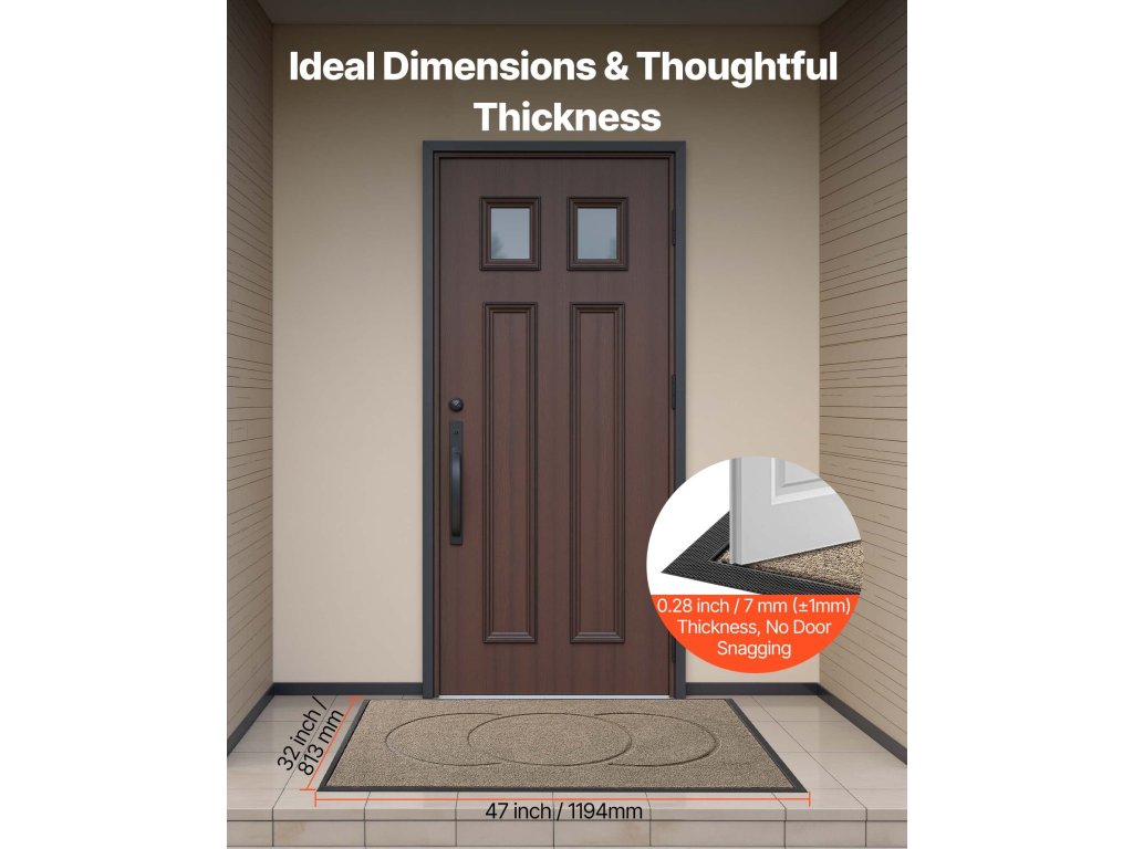 A 47 x 32 hüvelyk / 1194 x 813 mm méretű bejárati ajtószőnyeg tökéletesen lefedi a folyosókat, teraszokat, verandákat és más nyitott tereket, és egyszerre praktikus és sokoldalú.