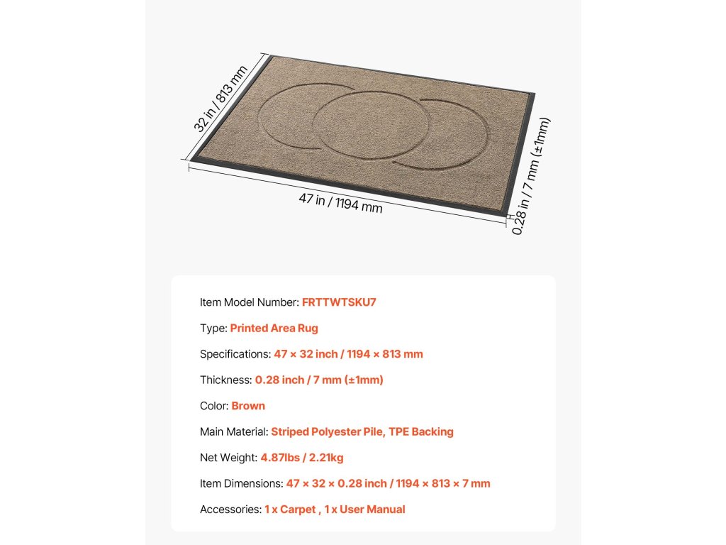 Szőnyegeink háromféle változatban kaphatók: 47 x 32 hüvelyk / 1194 x 813 mm barna színben, 47 x 35 hüvelyk / 1194 x 889 mm sötétbarna színben és 61,5 x 36 hüvelyk / 1562 x 914 mm szürke színben, így sokoldalú választékot kínálnak a különböző terek és szobaméretek számára.