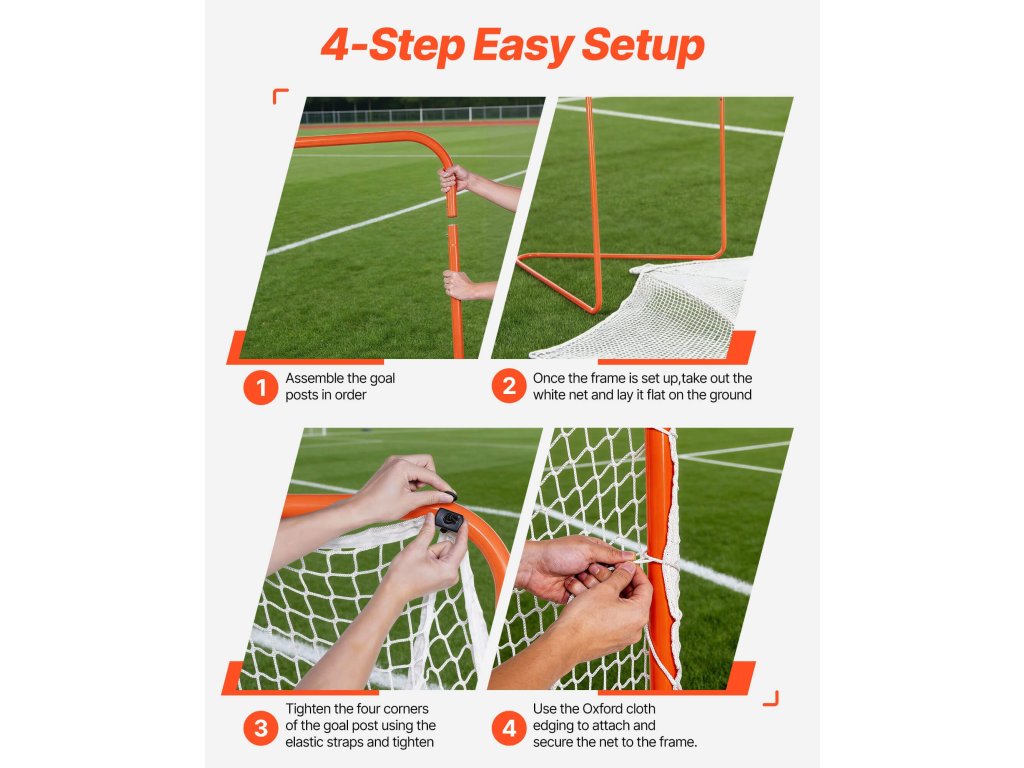 Lacrosse kapu 1,8m × 1,8m acélvázas, hordozható, táskával, narancssárga